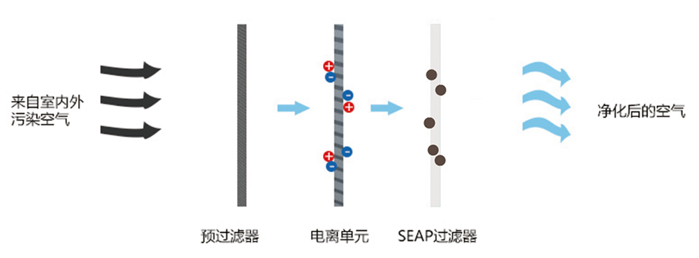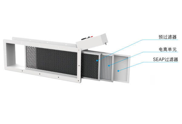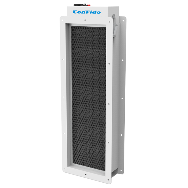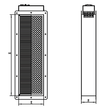 工作原理:采用肯菲特自平衡靜電空氣凈化技術(shù)(SEAP),首先含有塵粒和細菌的空氣經(jīng)過預(yù)過濾器,含有PM2.5的微粒經(jīng)過電離單元,電離單元通過電暈放電時使微粒荷電。帶電微粒隨風(fēng)經(jīng)過采用了肯菲特SEAP技術(shù)的駐電極纖維材料,由于SEAP材料自帶靜電,與帶電的微粒相互吸引,使得微粒被吸附在SEAP過濾器上,達到高效去除PM2.5的作用。 尺寸圖 結(jié)構(gòu)圖 參數(shù)表...