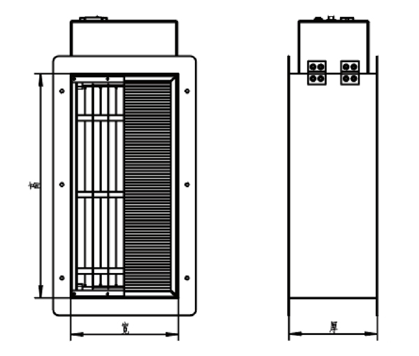 工作原理:預(yù)過濾 預(yù)過濾器很薄,厚度10mm,采用永久使用材質(zhì),可清洗,阻力小。 微粒荷電 采用薄金屬板和電離絲,電離絲與板間產(chǎn)生電暈放電,空氣中運動的塵埃微粒和細(xì)菌顆粒在流經(jīng)板間間隙時被荷電。 微粒吸附 帶電空氣微粒流入蜂窩狀集塵區(qū),集塵區(qū)是電介質(zhì)為載體的密集強電場。預(yù)荷電的塵埃顆粒和細(xì)菌顆粒在強電場的作用下被吸附在中空腔體的內(nèi)表面上。 尺寸圖 結(jié)構(gòu)圖 參數(shù)表...