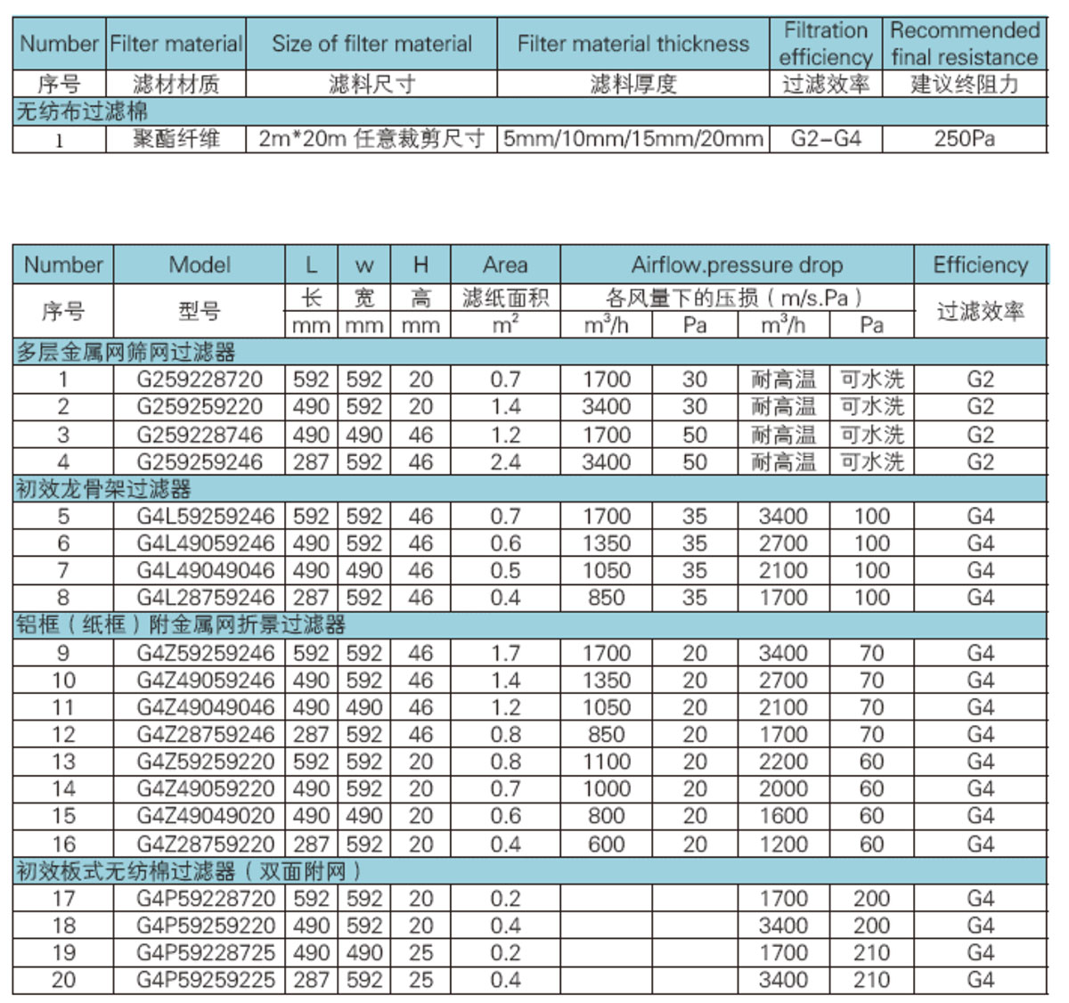 工作原理:1.濾料:纖& 化纖混合無紡料或合成纖維 2.護(hù)網(wǎng)(可選項(xiàng)):噴塑鋼網(wǎng)或鋁合金網(wǎng) 3.效率:平均計(jì)重效率 80%G4(EN779): Avg.arrestance90-95%,>95%@(;.5um)平均計(jì)重效率 90-95%,>95% @ (;.5um) 4.連續(xù)運(yùn)行溫度 ≤ 70℃ 5.耐濕性: ≤ 100%RH 6.建議最大允許終阻力:≤250Pa ...